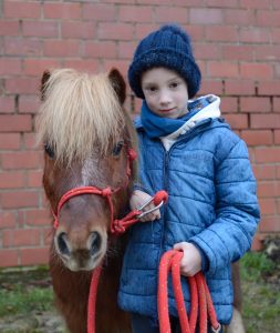 Phil, im Foto oben mit seinem Lieblingspony „Hennes“ hat sich für Zirkuslektionen entschieden. Dabei lernen die Ponys das Kompliment, das Stehen auf einem Podest …